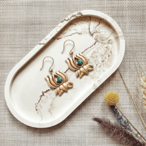 These handcrafted brass lotus earrings are inspired by traditional Indian art and bohemian aesthetics. The beautifully detailed lotus motif symbolizes purity, growth, and positivity, while the turquoise stone at the center adds a refreshing pop of color and natural charm.