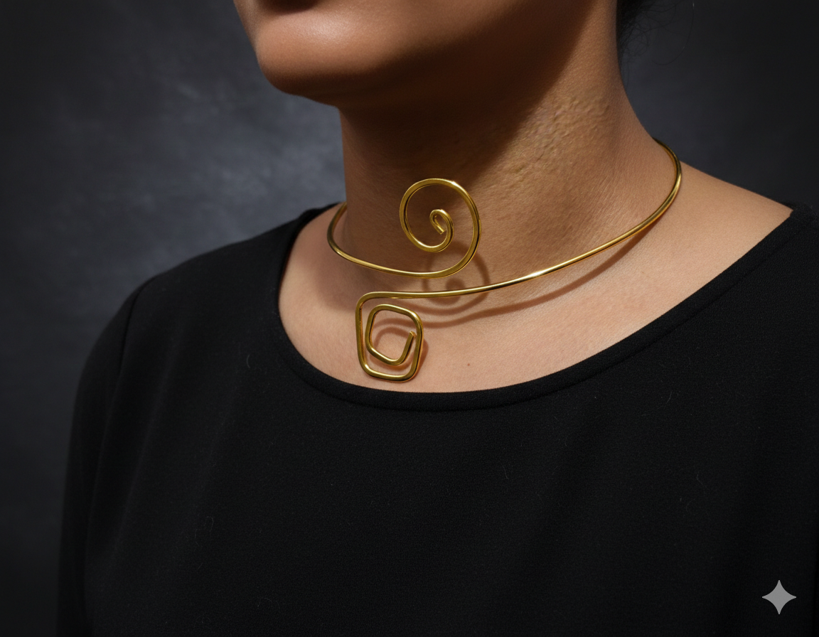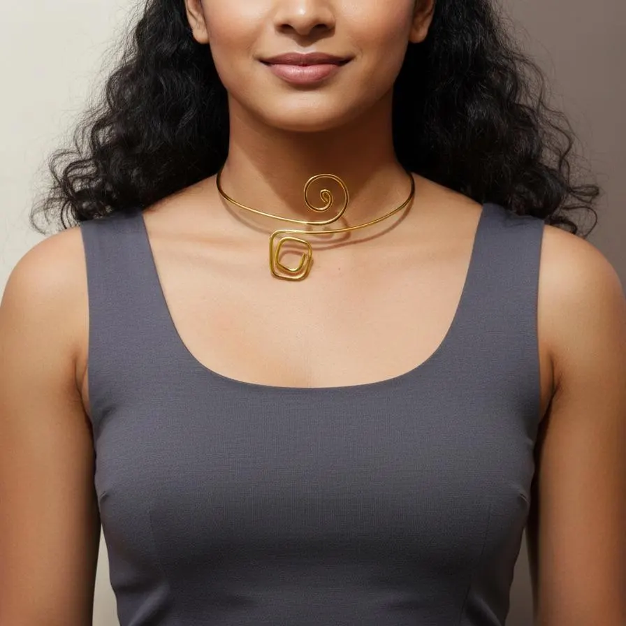 Celebrate timeless tribal elegance with this Handmade Brass Hasli Choker Necklace, beautifully crafted using traditional wire work techniques. Inspired by ethnic Indian and bohemian tribal jewelry, this statement piece reflects raw beauty, strength, and artisanal heritage.