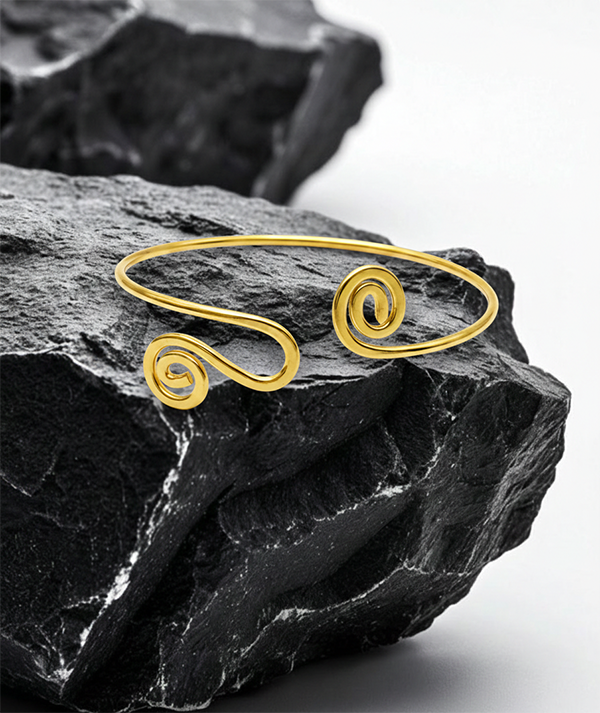 This handcrafted brass spiral open cuff bangle showcases a beautifully balanced design inspired by natural curves and modern minimalism. The smooth spiral ends flow effortlessly into an open cuff structure, creating a refined yet artistic statement.