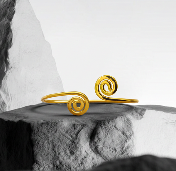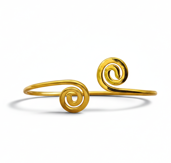 This handcrafted brass spiral open cuff bangle blends minimal design with artistic elegance. Featuring smooth spiral ends and a refined open cuff structure, this bangle reflects balance, flow, and timeless craftsmanship.
