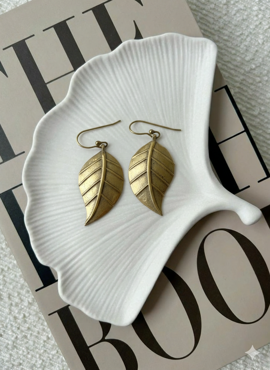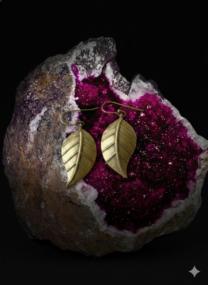 These handcrafted brass leaf earrings are inspired by the natural beauty of leaves and designed for lovers of bohemian and earthy jewelry. The delicate leaf detailing combined with a vintage gold finish creates a timeless, elegant look that complements both traditional and modern outfits.