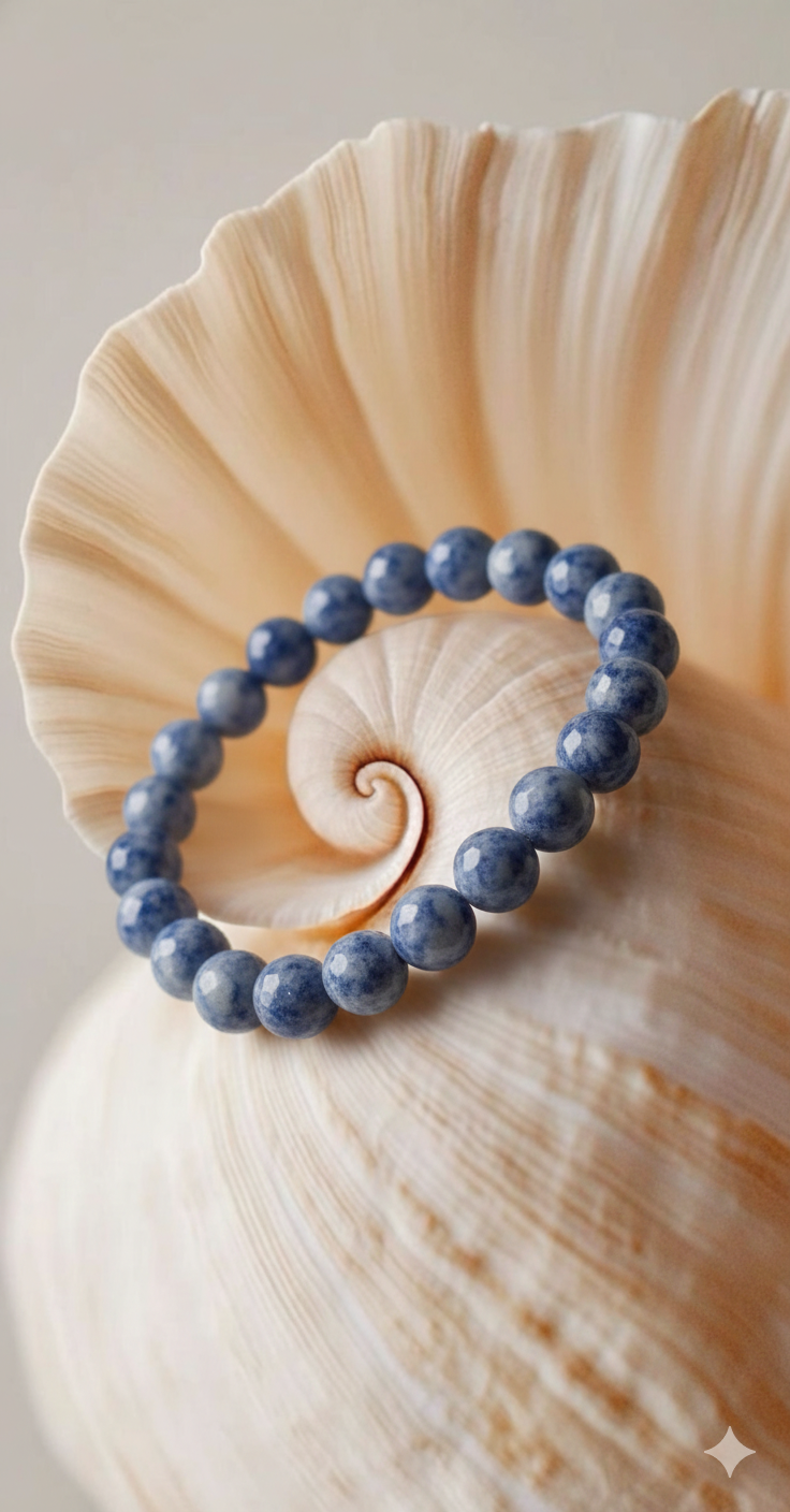 This handcrafted bracelet features natural blue sodalite gemstone beads with soft white marbling and a deep calming blue tone. Known as a stone of clarity and communication, sodalite is believed to support mental focus, inner peace, and emotional balance.