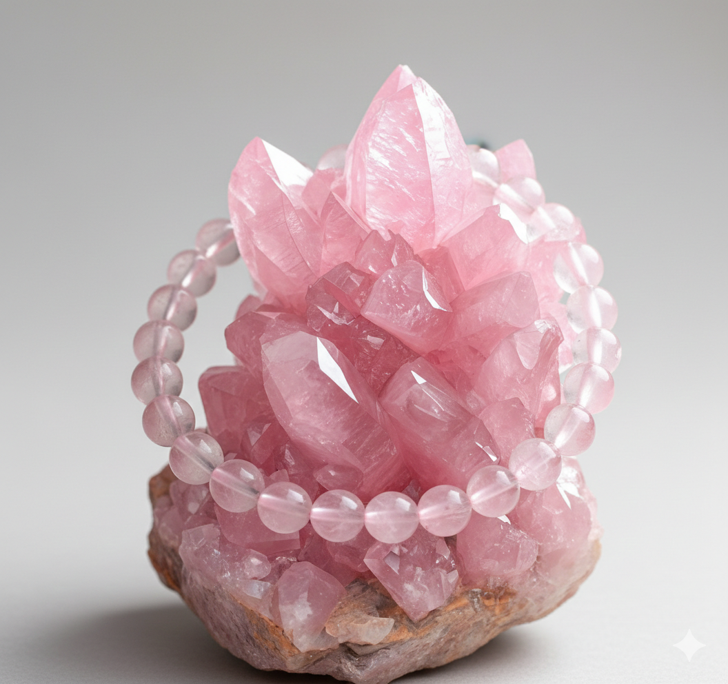 This beautiful rose quartz beaded bracelet is made from smooth, polished natural rose quartz beads, known as the stone of love, compassion, and emotional healing. Its soft pink hue radiates calm, warmth, and positive energy, making it both a meaningful and elegant accessory.